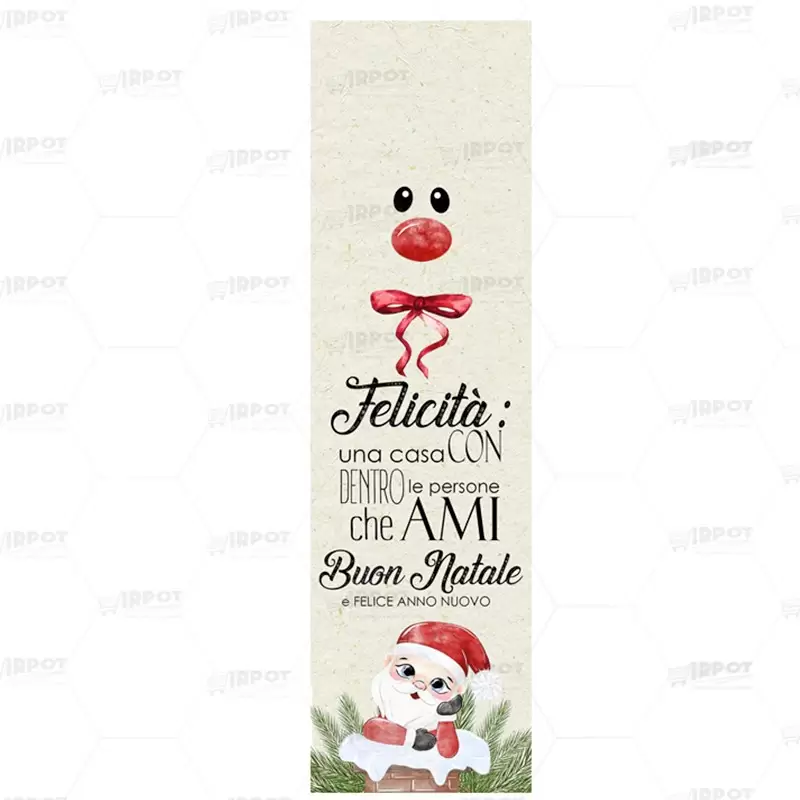 30 segnaposto natalizi con grafica di Babbo Natele nella parte inferiore, di una faccina di renna accennata nella parte superiore, impreziosito da una frase speciale.