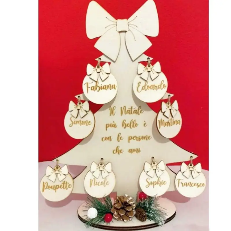 Bellissimo Albero di Natale in legno con otto palline personalizzabili, perfetto da regalare ai tuoi cari per completare le decorazioni Natalizie !