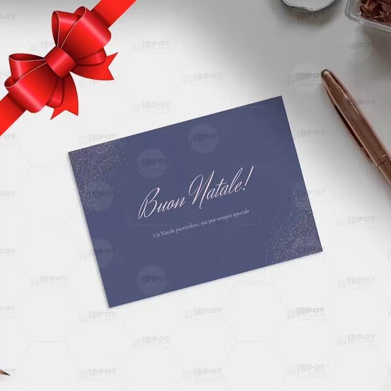 Un bellissimo biglietto natalizio da stampare su cartoncino, di colore blu con testo “Buon Natale”. Misure: 10×11 cm. Potrete personalizzarlo con una frase da voi scelta.
