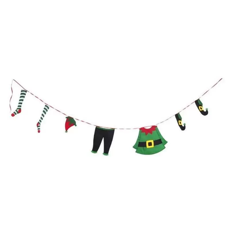 Bellissimo festone natalizio composto da vari elementi che rappresentano un elfo natalizio. Lunghezza: 2.8 metri. Codice: XB0053