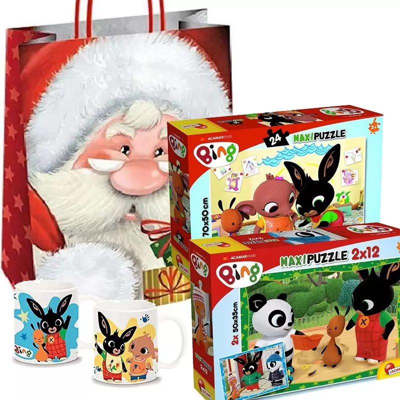 I bambini sono appassionati del cartone animato “Bing & Friends”. Ecco perchè scegliendo un regalo che abbia il coniglietto nero come protagonista, non si sbaglia di certo: 2 puzzle Bing, una tazza in ceramica, busta shopper natalizia! Scorri la pagina per maggiori dettagli