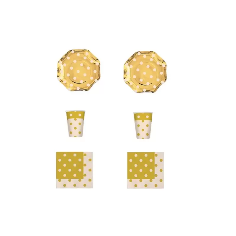 KIT N 2 COORDINATO POIS ORO IDEALE PER FESTA DI NATALE O CAPODANNO TAVOLA PARTY