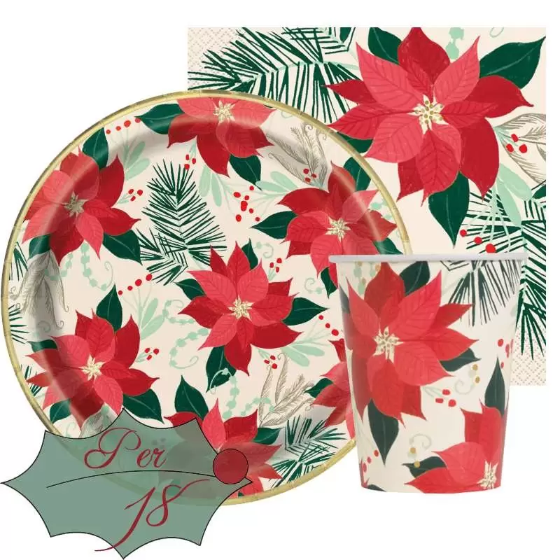 Un bellissimo set festa perfetto per Natale: 16 piatti, 16 bicchieri, 32 tovaglioli di carta.