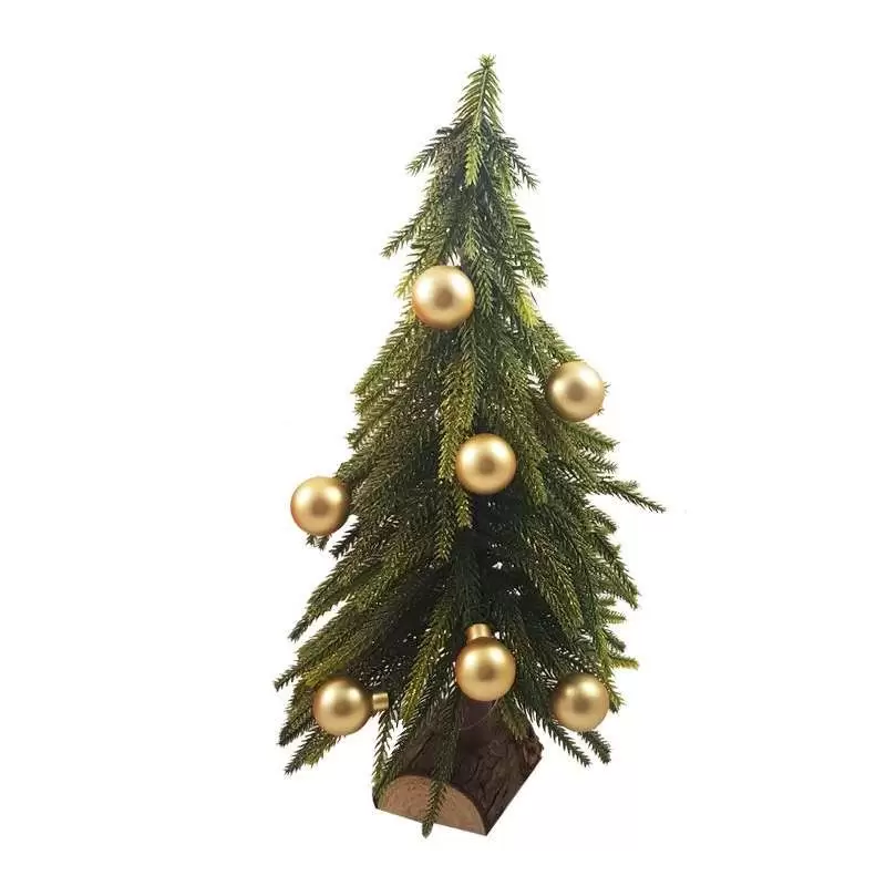 Un bellissimo alberello da 35 cm con base di legno da addobbare con 12 palline oro opache da 2,5 cm. Un’idea perfetta per chi ha poco spazio in casa, per un ufficio o anche per un ristorante, una vetrina di un negozio..