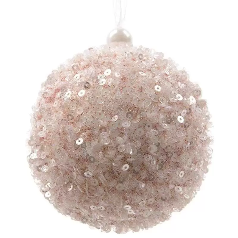 12 palline di Natale blush pink glitter da 8 cm di diametro. Codice: KM-45611