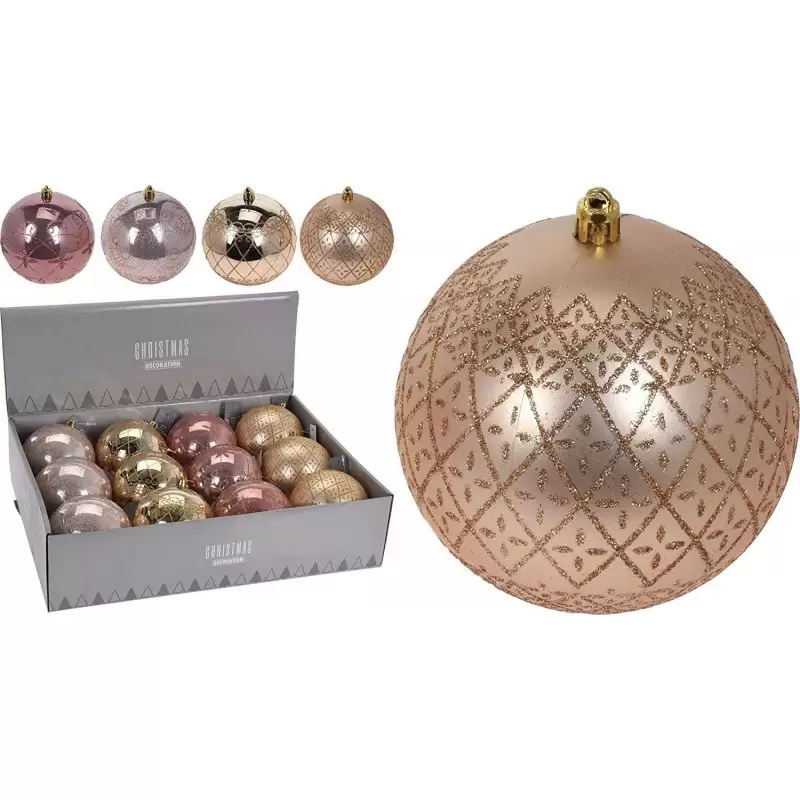 12 palline di Natale da 10 cm di 4 colori diversi glitter. Codice: ND-169267