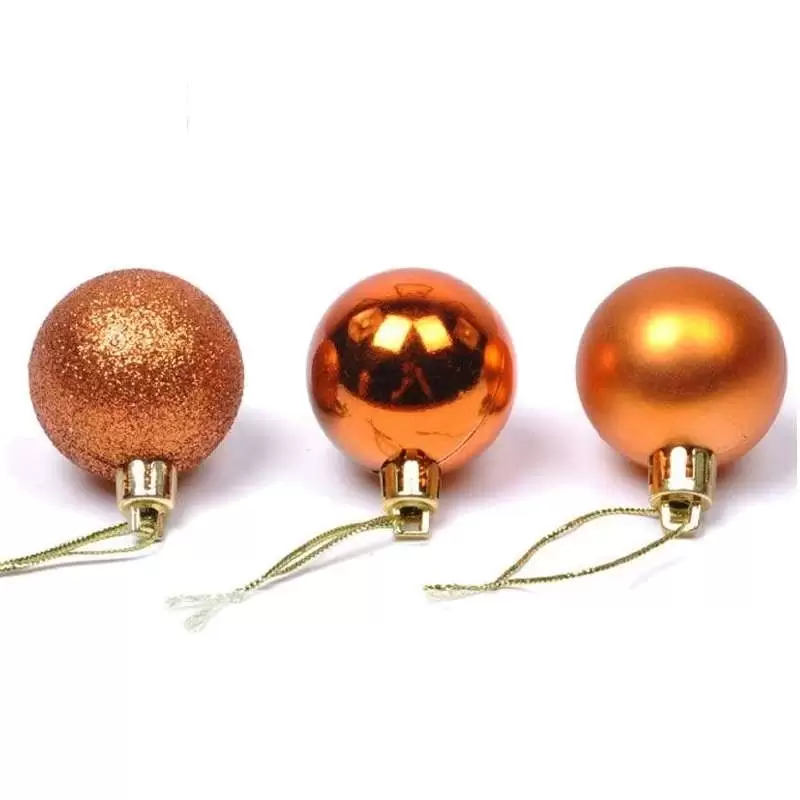 Riceverete una confezione da 10 palline natalizie da appendere sul vostro albero di colore bronzo-rame da 6 cm di diametro. Il finish è diverso: opaco, lucido, glitter
