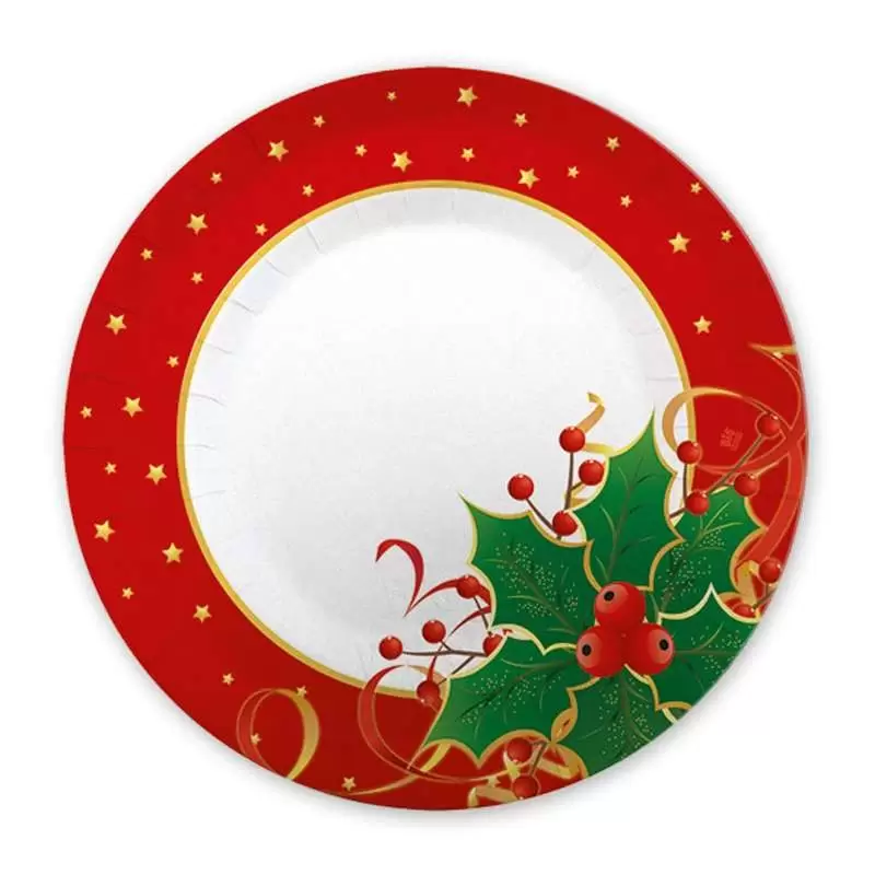 Una confezione da 8 piattini natalizi in cartoncino da 20 cm di diametro. Codice: 30226